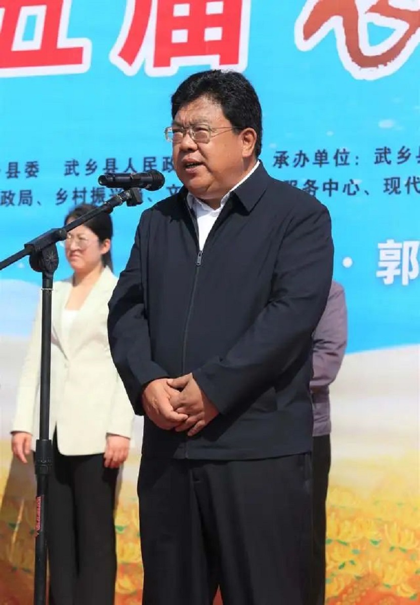 在致辞中王书文讲到:近年来,武乡县紧盯农民增收这个核心,聚焦“米、菜、菌、肉、饮、销”六大产业,大力实施谷子、梅杏“双十万亩”培育工程,加快推进羊肚菌、太湖豆制品、涌泉酒厂等项目建设,延伸发展精深加工产业,形成以小米、梅杏和肉鸡、肉牛为主的特色种养,以枣糕、灌肠、饼则、芝麻饧为主的特色食品,以野菊花茶、连翘茶、苦荞茶为主的特色药茶,农业产业蓬勃发展,特色品牌打响叫亮。与此同时,我县全面推广“农业生产托管”试点,健全集体收益分配制度,推进城乡环卫一体化,打造乡村记忆馆、五村“前沟之恋”田园综合体、魏家窑综合体验园等乡村旅游精品,先后荣获“全省农业生产托管高质量发展试点县”、“全国村庄清洁行动先进县”等称号。