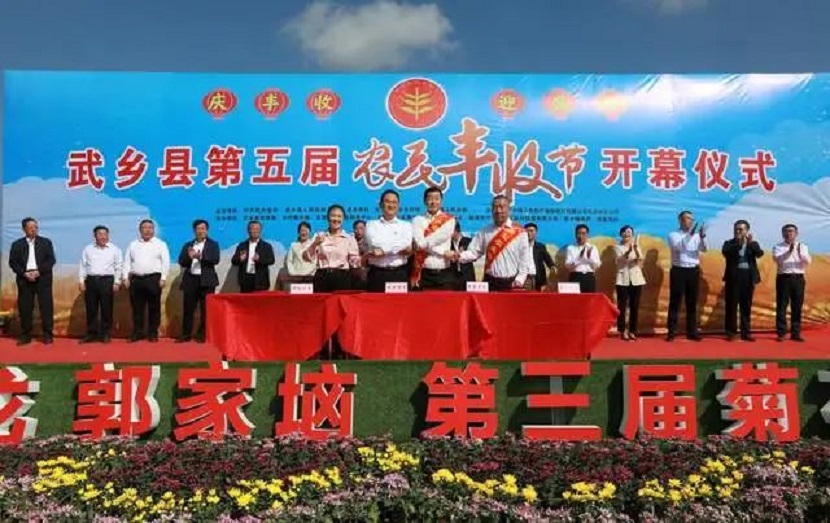 中国中央数字电视《法制与经济》栏目山西报道:在秋风送爽,菊花绽放的美好季节,武乡县第五届农民丰收节于9月22日上午在盘龙镇郭家垴村隆重开幕。来自武乡县委、县政府和各乡镇、各部门主要负责人及优秀“三农”代表汇聚一堂,共享丰收盛典。