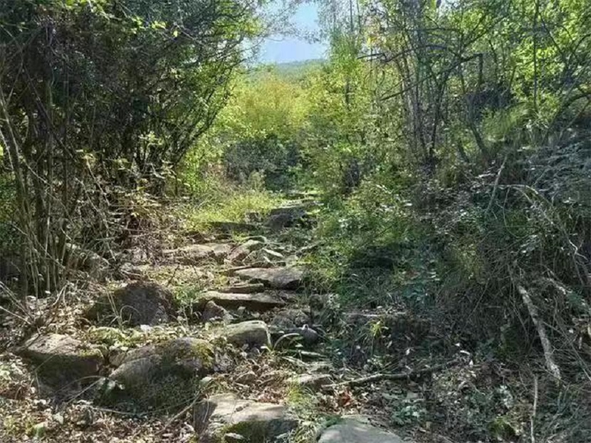 焦坪村位于山西省阳城县东冶镇西南部9公里处,2020年并入独泉,现有107户241口人,是一个自然条件相对落后,人口稀少的自然村落。原焦坪村下辖焦坪、谭河和八里背等三个自然村,焦坪在土岭山顶,潭河在谷底,八里背在佛庙岭山腰。从焦坪到谭河,海拔直降205米;从谭河到八里背,海拔陡升197米。可想而知当时人们的出行是多么的不便 。从东冶到济源,沿途要翻越比这里还要陡峭的五道山岭,每一道山岭都是“爬山时累得人气短,下山时墩得人腿软”。从东冶到济源白涧的六十华里山路属“官道”,路面都是由石板铺成的。或由砂石砌成,或由青石铺就,大大小小,厚薄不一,或长或短或方或圆,经匠人的精心安排,砌成一道曲里拐弯、随坡就势、宽度大约两米至三米左右的规整山路。数百年来,砂石被踩得光滑腻润,青石更是被磨得光可鉴人,路边却无一处垮塌,路面也没有杂乱生出的灌木。远远望去,这些被岁月打磨的光亮石块亦如山间小溪里泛起的朵朵浪花,在数千年的历史长河中,熠熠生辉。