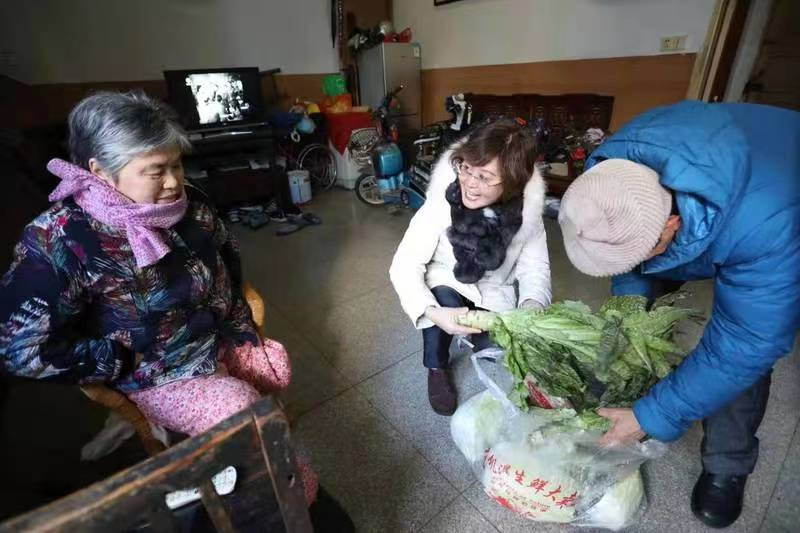 “爱心企业送来一些蔬菜,我们给你送过来。”今天(12月30日)下午,姑苏区虎丘街道观景社区党委书记周洁和同事给硕房庄北42号的周桂荣送来了一大包蔬菜,里面有大白菜、莴苣、黄豆芽等。他是退役军人,妻子是肢体二级残疾,平时生活不能自理,都靠他照料。这次寒潮来袭,周洁等人送菜上门,并叮嘱他们尽量减少出门,注意防寒保暖,有什么情况第一时间通知社区。