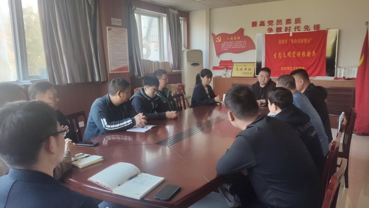 社会与法河南讯: 10月28日上午,安阳市生态环境局文峰分局张傑局长组织全体干部职工开展“党的创新理论-生态文明宣讲轻骑兵”——二十大报告中,关于人与自然和谐共生为主体的宣讲活动。