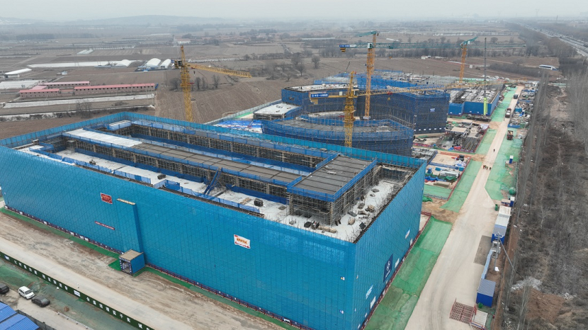 虽然寒风阵阵,但长子县数智小镇一期建设项目工地上却热潮涌动,大型塔吊来回运转,施工人员身着工作服,头戴安全帽,戴着口罩,分散在不同作业区,各司其职,有序施工。该项目主要包括3栋数据中心机房楼、1栋专家服务楼。截至目前,1#数据中心机房楼已封顶,2#数据中心机房楼一层主体已完成70%,3#数据中心机房楼一层主体已完成20%,专家服务楼正在进行四层主体结构施工,已完成所有主体结构的73%,总体施工进度按照项目既定计划实施。