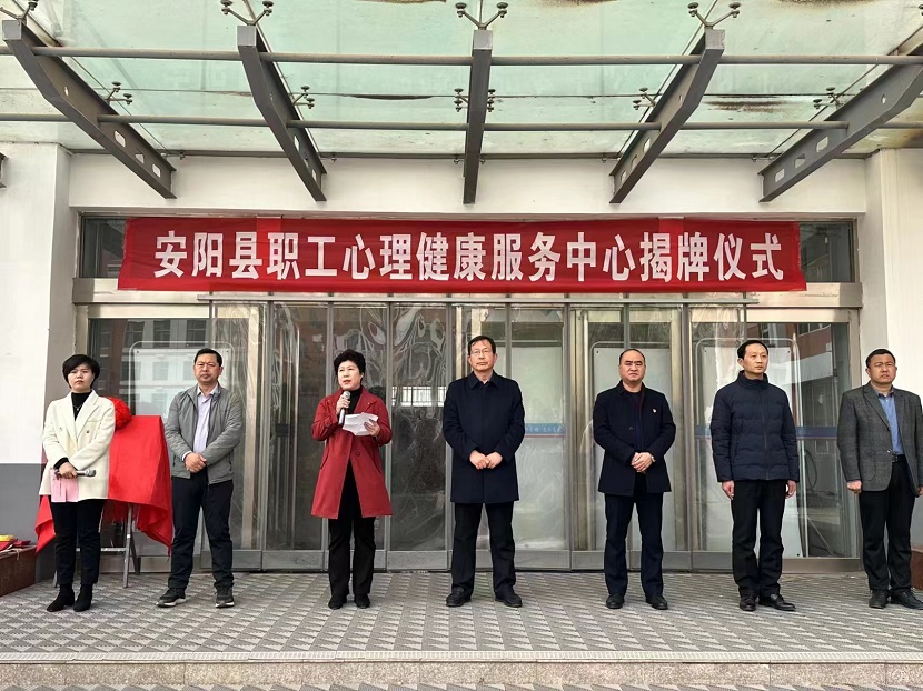 中国数字电视《社会与法》栏目讯 (通讯员:秦广林)3月23日,河南安阳市安阳县职工心理健康服务中心在安阳县职业中专挂牌成立,安阳县总工会副主席郭建秀主持揭牌仪式。