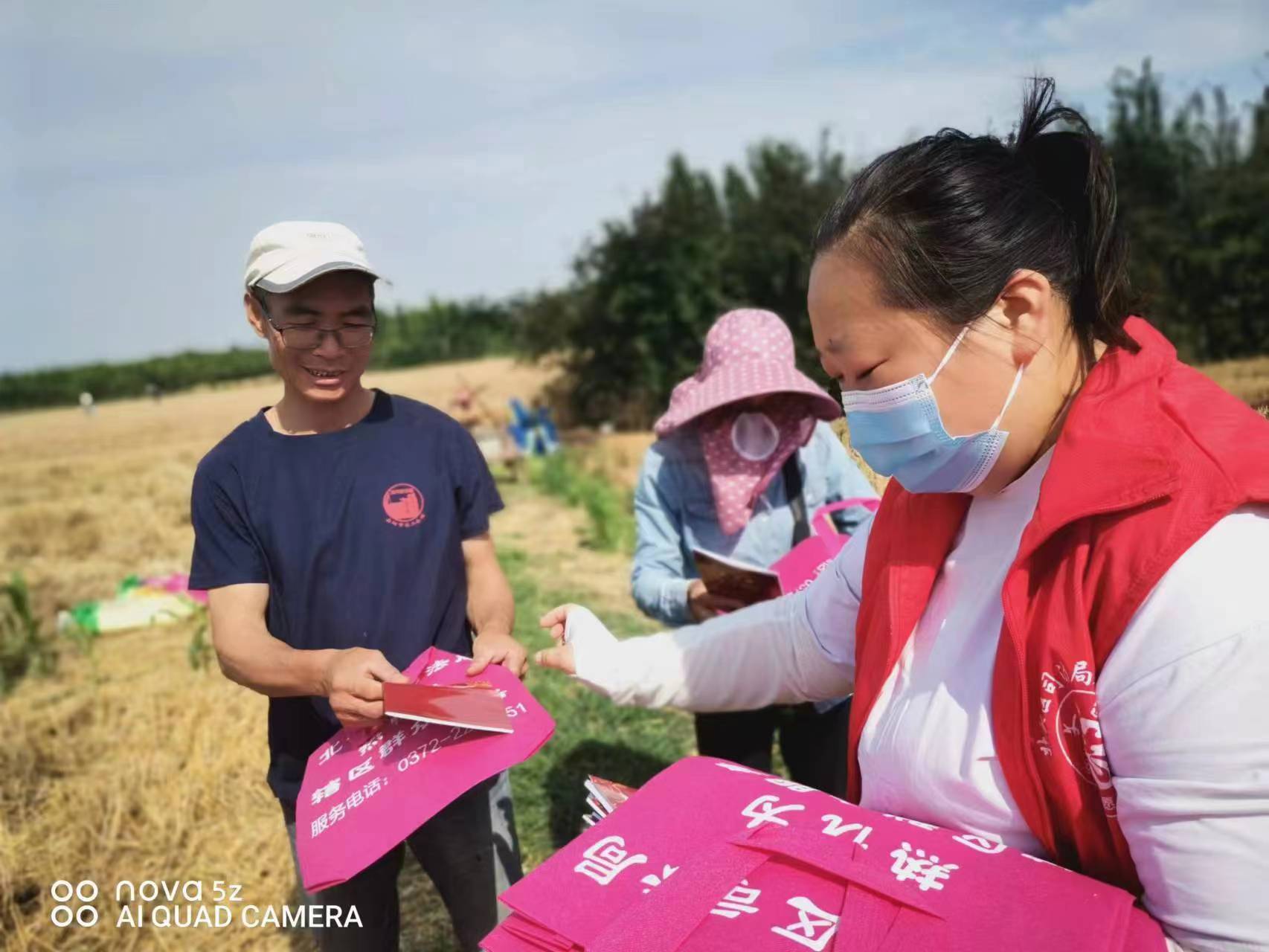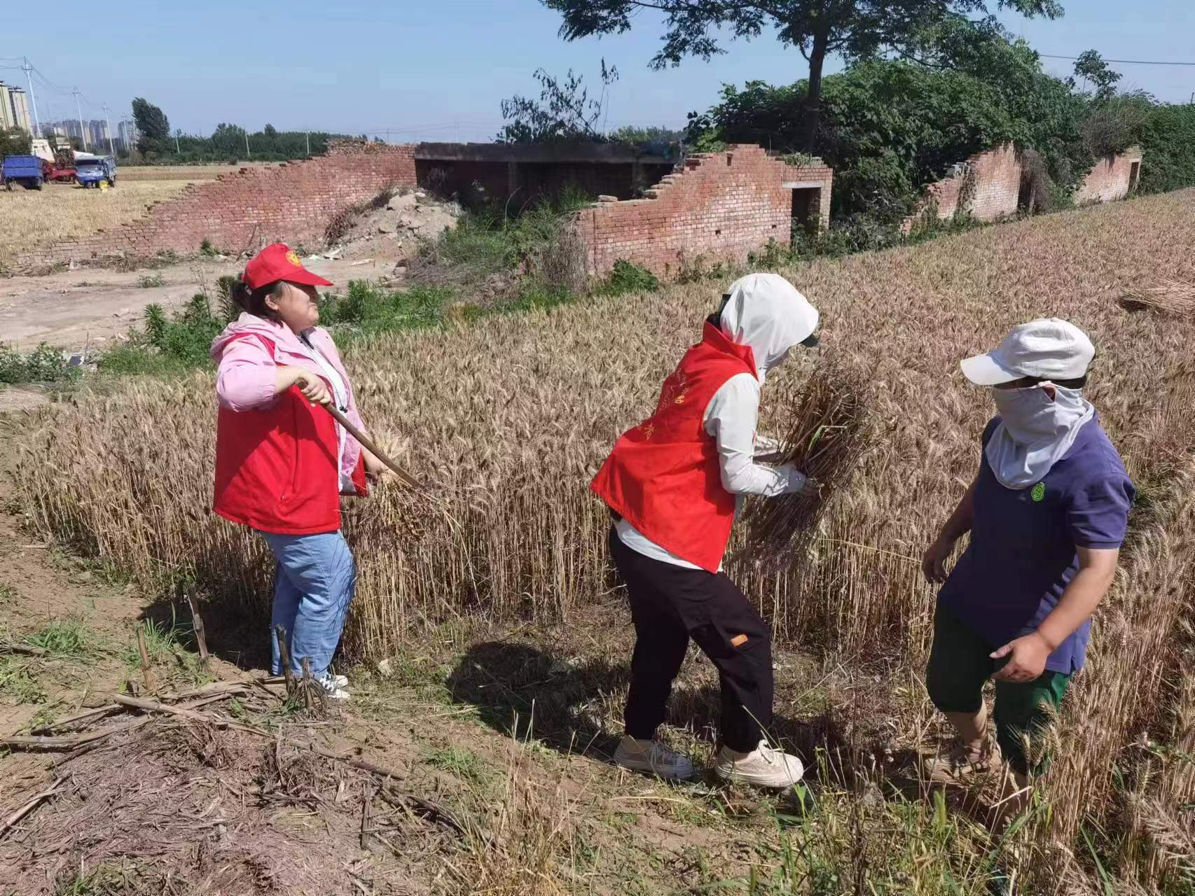 河南安阳:遍地金黄麦飘香 田间泛起志愿红