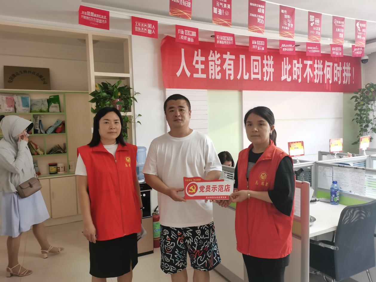 “以前觉得党员身份和日常经营关系不大,顾客知不知道无所谓。今天挂上了这‘党员示范店’的牌子,我觉得身上多了一份担当和责任。”安阳健达生物科技有限公司赵进国高兴的说。