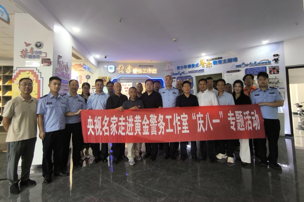 中国数字电视《社会与法》栏目山东省枣庄市滕州讯:7月31日讯,在“八一”建军节来临之际,中国数字电视CCTV《社会与法》栏目群联部主任、中央宣传部主管党建头条区域主任王海涛和马召利、刘敏精心策划下,特邀请著名书法家刘啸泉、张纯峰、梁子华、刘振浩一行走进滕州市北辛街道党群服务中心“黄金警务工作室”,开展了一场别开生面的现场书法交流活动。书法家们以饱含深情的笔墨艺术,向忠诚守护平安的公安民警致以崇高敬意。此次活动,成为展现该工作室以高质量党建引领警务工作的生动窗口。