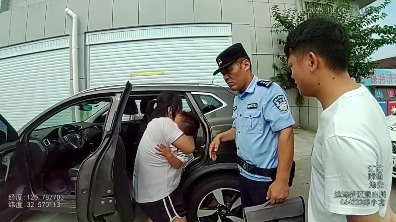 10月1日上午,民警接到报警,称角斜一对夫妇粗心未拔车钥匙,仅留两岁小孩一人在车内,后小孩误触将车门反锁。高温下情况危急,小孩在车内多停留一分钟就多一分危险,民警火速出警救援,一边联系开锁师傅,一边安抚惊慌失措的家长,很快帮助小孩脱离险境,守护了辖区群众生命安全,得到了群众的好评。