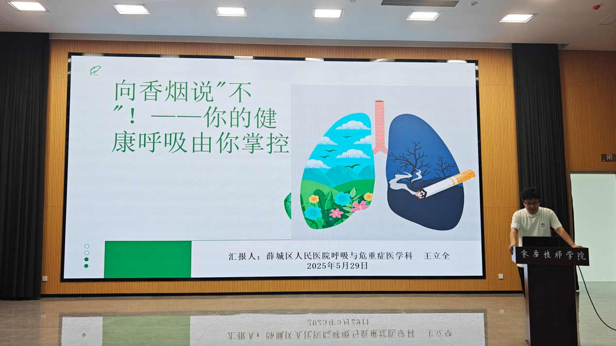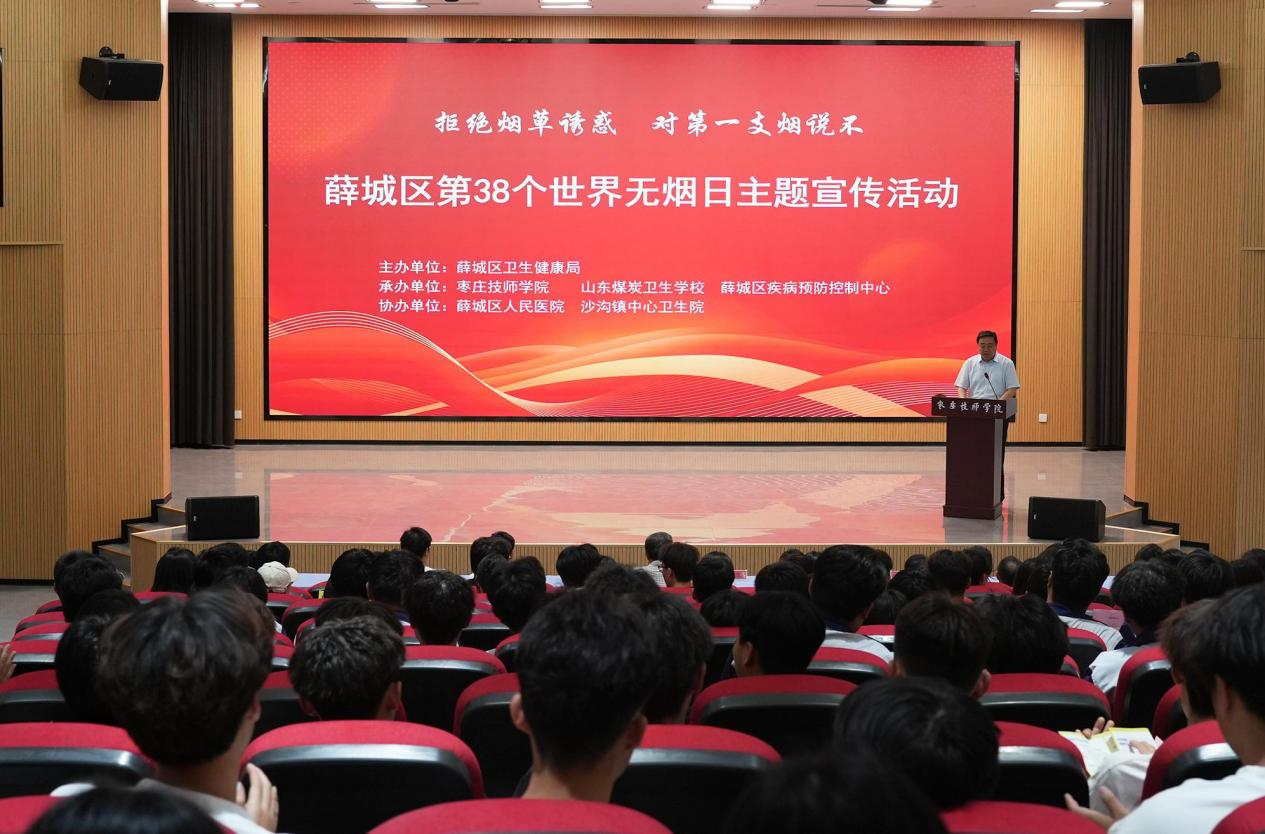 5月29日,在第38个世界禁烟日来临之际,枣庄技师学院、山东煤炭卫生学校特邀薛城区卫生健康局、区疾控中心、区人民医院等卫生医疗专家走进校园,为全校师生带来一场别开生面的“世界禁烟日”主题宣传活动,以专业之声敲响健康警钟,用知识之光照亮无烟未来。枣庄技师学院副院长(山东煤炭卫校党委副书记)高玉龙出席并主持了活动。